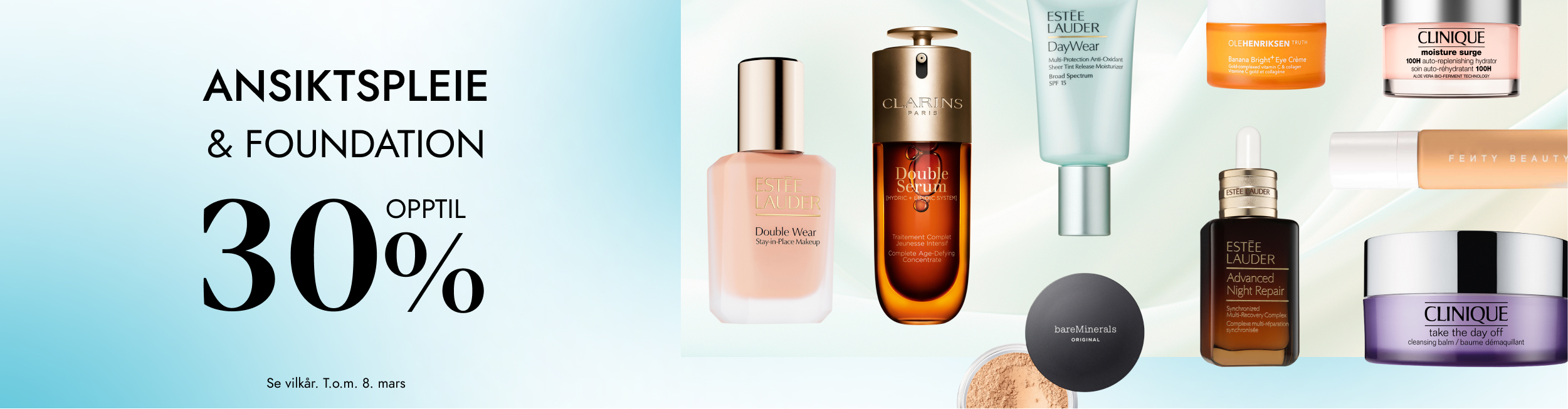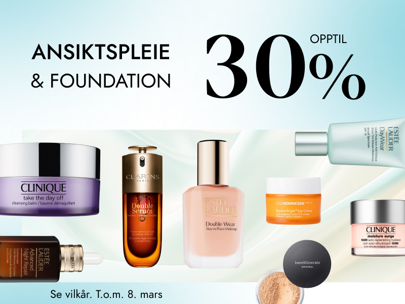 Nå får du hele 30% rabatt på all ansiktspleie og foundation fra Estée Lauder