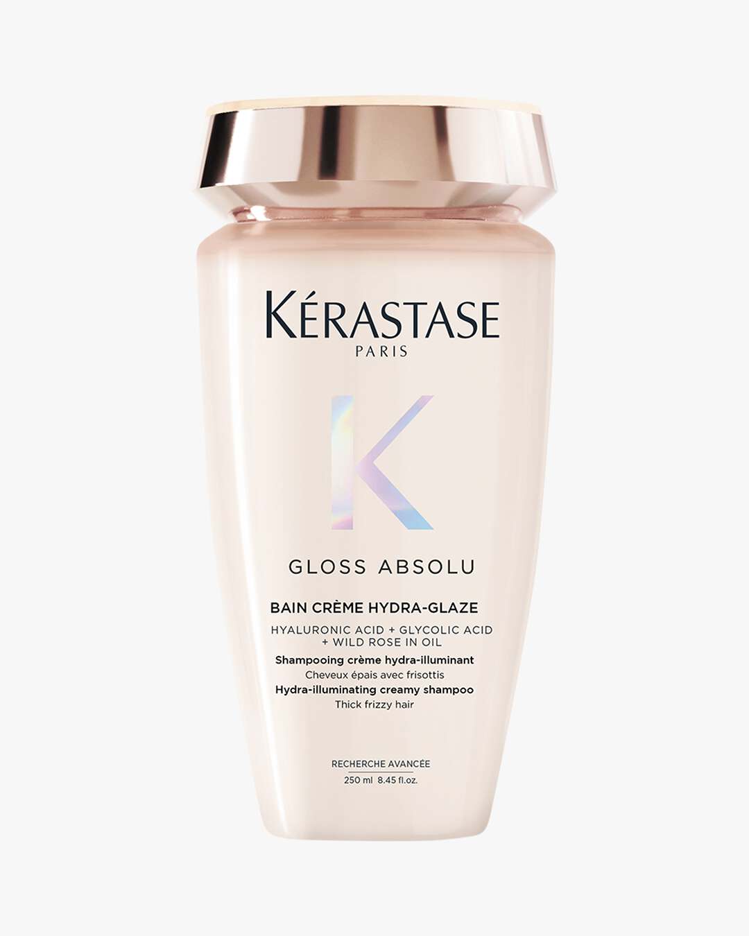 Kérastase Paris Bain Crème Hydra-Glaze Shampoo er en kremete hydra-illuminating shampoo til tykt, krusete hår som etterlater håret intenst fuktet og glansfullt. Den kremete formelen inneholder hyaluronsyre, glykolsyre og villroseolje som renser hodebunnen dypt, glatter ut håret og gjør det enkelt å gre. Nyt fuktet, bouncy og glansfullt hår med 4 dagers anti-frizz.