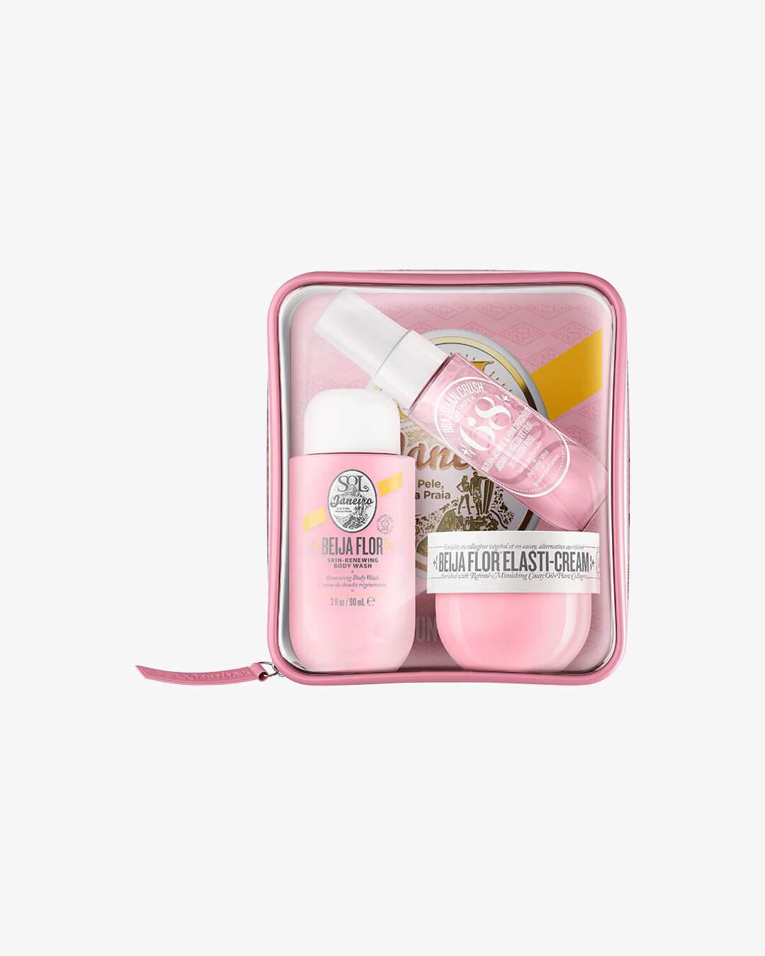 Settet inneholder: Beija Flor Skin-Renewing Body Wash 90ml, Beija Flor Elasti Cream 50ml og Cheirosa 68 Perfume Mist 30ml.
