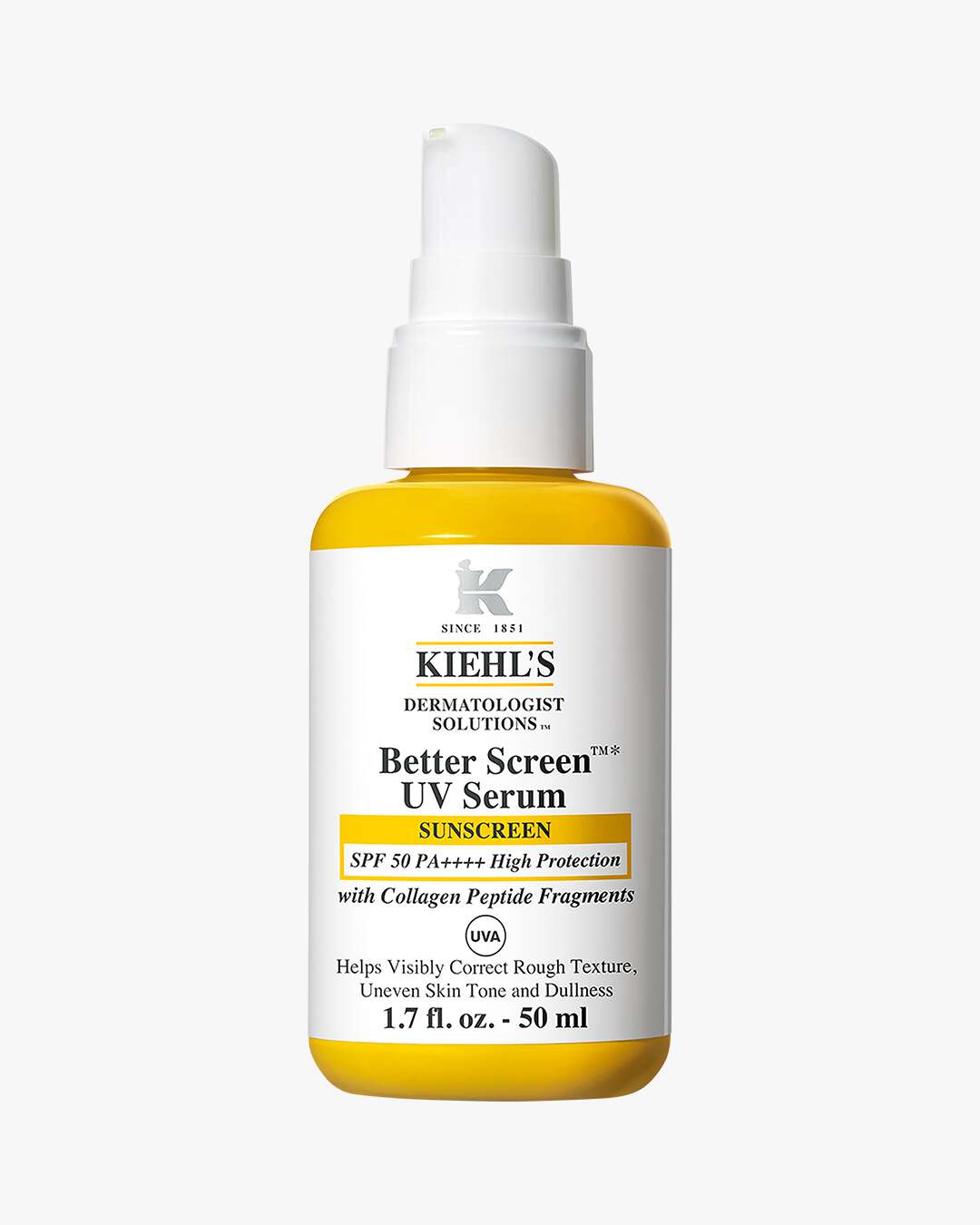 Kiehl's Better Screen™ UV Serum SPF 50+. Både UV-beskyttelse og et serum i én flaske. Vårt lette, ikke‑klissete solserum med SPF 50 og kollagenpeptidfraksjoner er spesielt formulert for å beskytte mot solskader og bidra til å synlig minimere tidlige tegn på aldring. Drevet av avanserte UV-filtre som bidrar til å beskytte mot UVA og UVB, og kollagenpeptidfraksjoner som bidrar til å minimere synlige tegn på UV-skader, arbeider vår formel med en usynlig finish for å booste hudens glød og synlig forbedre hudtone og tekstur, samtidig som den smelter sømløst inn i flere hudtoner. Den ultralette, ikke‑klissete formelen passer for sensitiv, fet og akneutsatt hud.