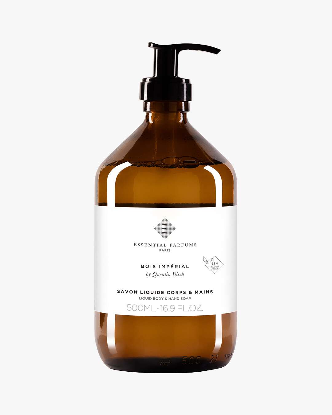 Essential Parfums Bois Impérial By Quentin Bisch Liquid Body & Hand Soap er en flytende kropps- og håndsåpe delikat parfymert med Bois Imperial av Quentin Bisch – 98% naturlig.