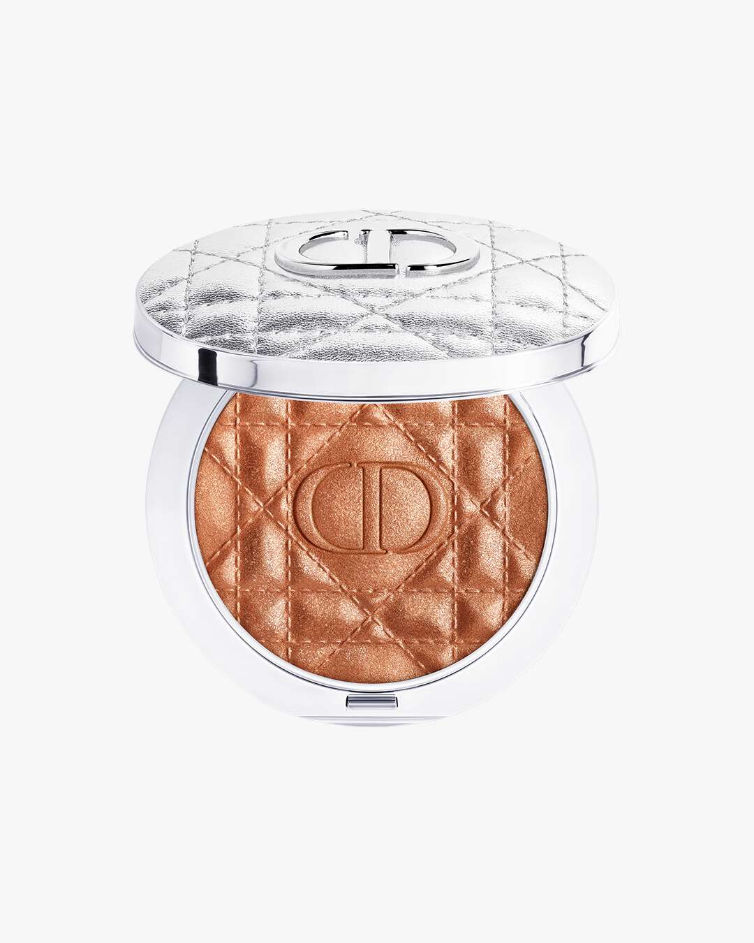 DIOR Forever Glow Luminizer – Highlighter Infused with Hyaluronic Acid. Dior Forever gjenoppfinner sitt glødende pudder som er tilgjengelig i tre nye finisher¹ for å reflektere lys fra alle vinkler: Halo for en krystallglød, Strobe² for et duokromt skimmer og Sequin for en glitrende utstråling.
