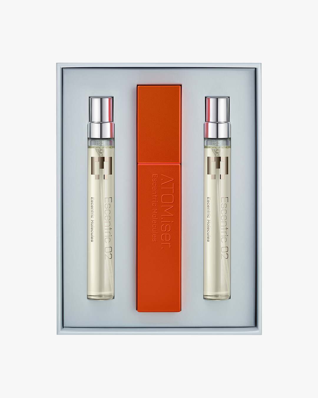 Et elegant ATOM.iser.-sett med tre 8,5 ml refiller av Escentric 02.