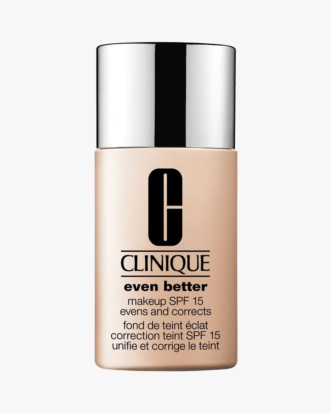Clinique Even Better Makeup SPF15 er en moderat dekkende foundation som umiddelbart perfeksjonerer og jevner ut huden. C-vitamin og antioksidanter arbeider aktivt for å gjøre mørke flekker, pigmentflekker, merker etter akne og uren hud mindre synlige. Even Better foundation gir en klarere og jevnere hudtone. Bredspektret SPF 15 beskytter mot fremtidig misfarging. Legger seg ikke i fine linjer. Tåler svette, fuktighet og vann.