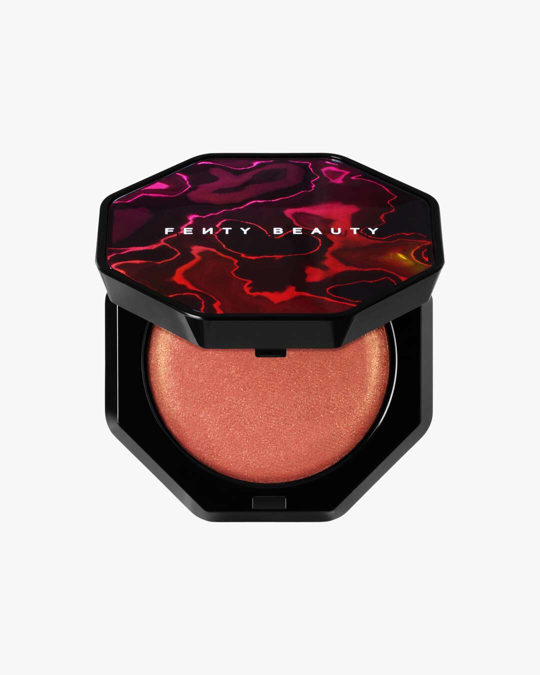 Fenty Beauty Hot Cheeks Baked Blush er en blushlighter i begrenset utgave i tre universelle nyanser som gir en ferskenrosa fargetone med en varm, gylden skimmerfinish.
