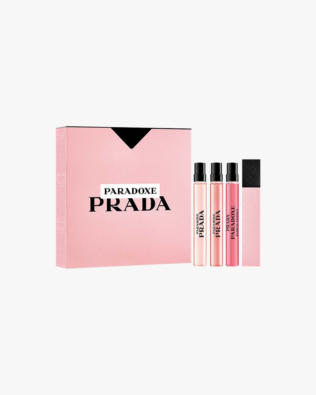 Prada Paradoxe Set. Unn deg selv eller en du er glad i dette Prada Paradoxe gavesettet. Gavesettet er dekorert med et mønster i begrenset utgave, hentet direkte fra Pradas motearkiver for høst/vinter 2003. Dette settet inneholder tre reise størrelser (10ml) av Paradoxe-dufter: