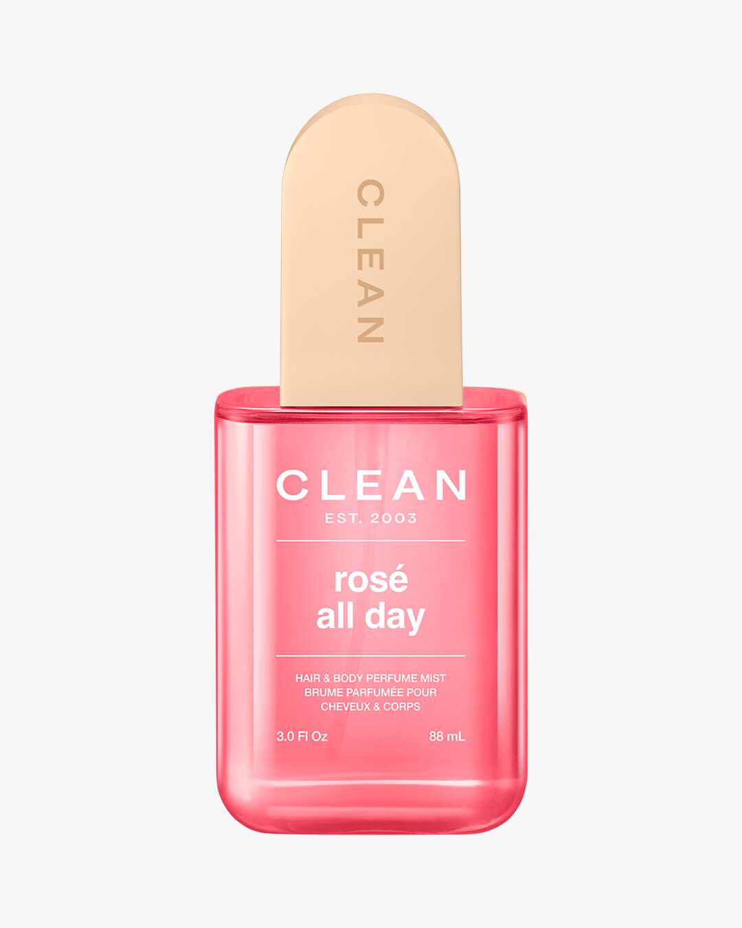 Clean Rosé All Day Hair & Body Perfume Mist dufter som en skål for livet – boblende, flørtende og full av glede. Duften åpner med en frisk og fruktig blanding av litchi, solbær og fersken. I hjertet blomstrer rose, sjasmin og freesia i en mykt duggfrisk bukett som gir en romantisk følelse. Basen avrundes med musk, mose og sedertre som etterlater en varm duft på huden – som gyllen solnedgang på sommerhud. Kombiner med Papaya Paradise for ekstra energi og en herlig tropisk vri.