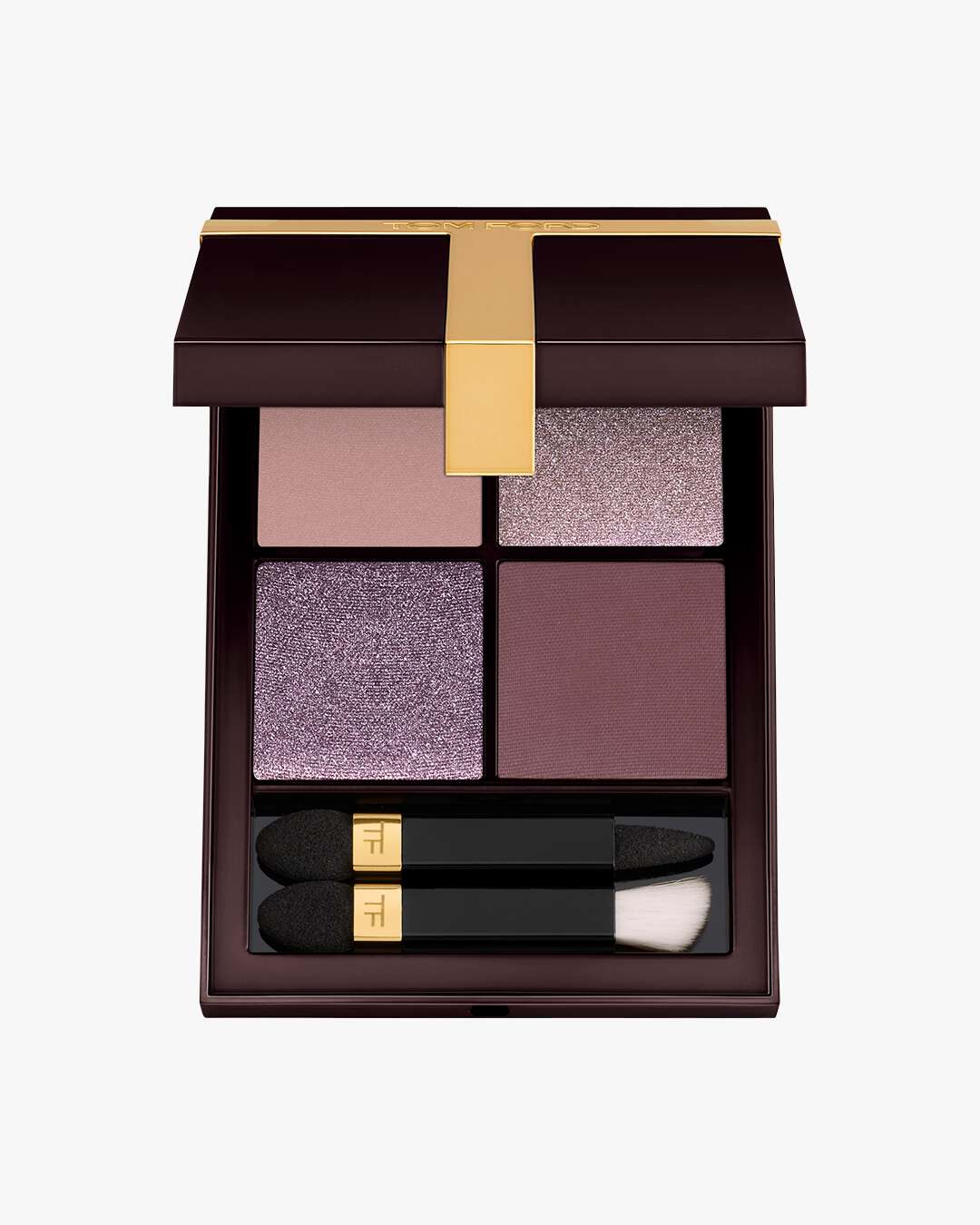 TOM FORD Runway Eye Color Quad Poudre Eyeshadow Palette er en øyenskyggepalett med ettertraktede nyanser i både poudre- og crème-format. Et gyllent T markerer Poudre-formelen, mens et matt brunt T indikerer Crème-formelen.