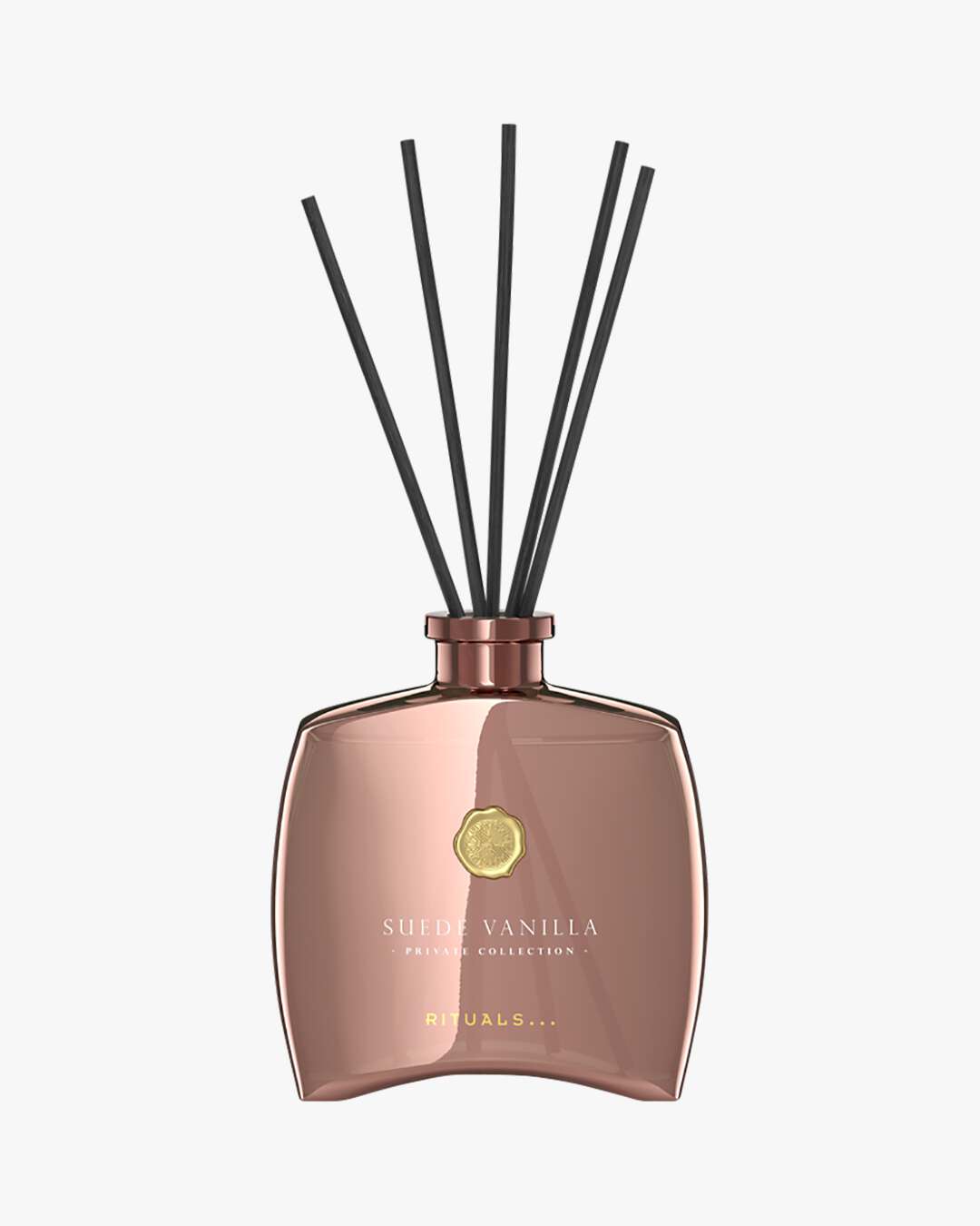 Rituals Suede Vanilla Fragrance Sticks. Skap en hjemmekoselig atmosfære med disse lekkert designede duftpinnene fra Private Collection. Den champagnefargede glasskrukken viser frem en metallisk, semi-transparent finish som passer perfekt sammen med forskjellige dekorstiler, enten den brukes til å fremheve din egen stue, eller gis bort som gave til en av dine kjære. Den sensuelle Suede Vanilla gir en varm og lett duft som åpnes med den søte og beroligende duften av vanilje, med bunnoter av kardemomme, rosmarin, patchouli og vetiver.