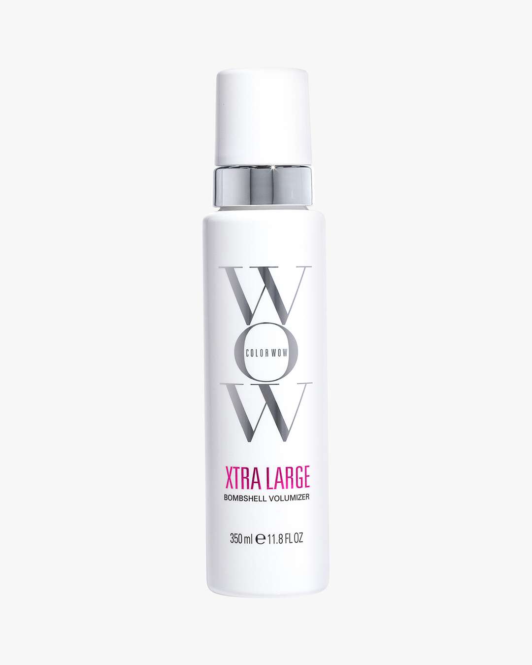 Color WOW Xtra Large Bombshell Volumizer. Volumgivende hårprodukter bruker ofte dehydrerende ingredienser (alkohol, salt og tørkeharpiks) for å tørke ut og tvinge hårets beskyttende ytre lag til å åpne seg. Når hårkutikulaen er ru og hevet, kan ikke hårstråene legge seg flatt, noe som skaper effekten av tørr volum. Derimot! Å åpne hårkutikula er svært skadelig, og fører til dehydrering, krusing, sprøhet. Xtra Large bruker helt ny volumgivende teknologi: en vektløs, men likevel voluminøs polymerblanding som etterlater hårets essensielle lag glatt, intakt og hydrert. Resultatet? Øyeblikkelig sunn volum som ikke går på bekostning av hårets helse.